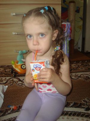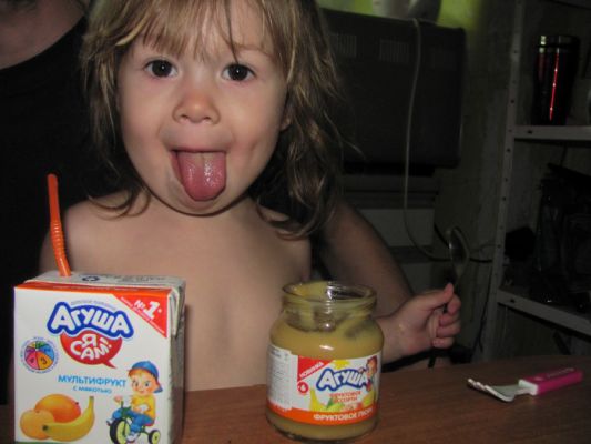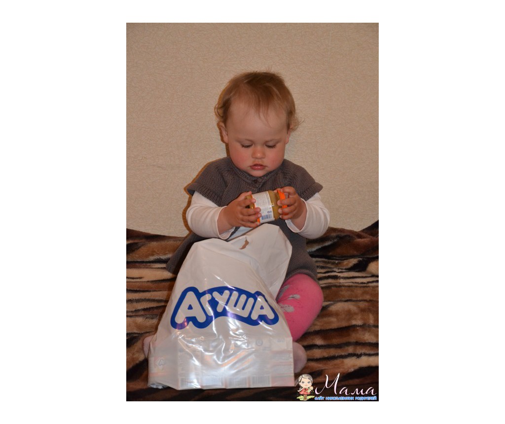 - Мы тоже получили посылочку от нашей любимой Агуши!!!Как только пришли домой Дианочка сразу начала тоскать коробку по всей квартире,пытаясь её открыть.Потом притащила её мне, с намёком"Мама открой!"Когда открыли, Диана сразу начала её изучать. Для начала поотрывала все трубочки с соков, потом исследовала все баночки и коробочки и наконец определилась, что начать дегустацию она хочет с фруктового пюре"Фруктовое ассорти". Вообщем баночку съела за пару минуток(мама еле успела одну ложечку попробовать)).Да..я бы тоже не отказалась от пары таких баночек)))Очень-очень вкусненько!!!!Потом Диана дальше занялась изучением продукции,а мама пошла заниматься делами.Через пол часика моя крошка приносит мне коробочку с соком и показывает "Дай".Мама долго не сопротивлялась. Сок "Мультифрукт" мы тоже выпили очень быстро, он оказался тоже очень вкусный.Особенно мне понравилось,что он с мякотью.Дианка такие очень любит!!А вечерком у нас был кефир и творожок от любимой Агуши!
