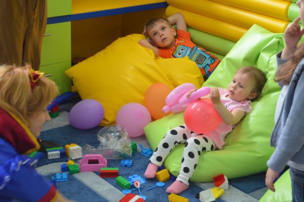мамочек с детишками для поездки уже непосредственно на завод, деток усадили,