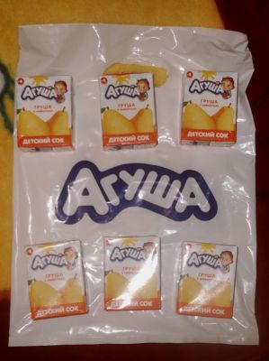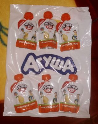 В пакетике были 5 пюрешек груша и 5 соков груша с мякотью. Мы очень