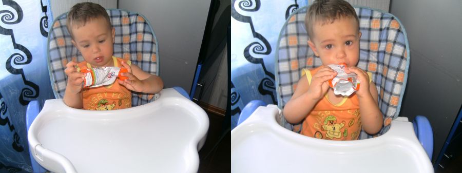 упаковки как раз хватает на перекус во время прогулки. Ребенок не голодный, но,