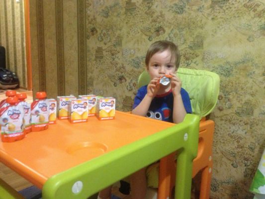 (творожок, йогурт, кефир, фруктовое пюре или сок), я рассказываю ему о