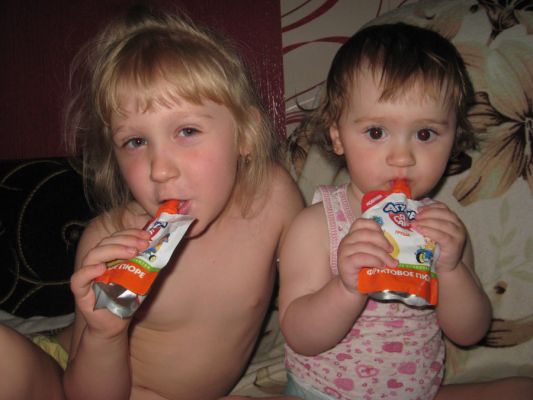 сок, кушаем фруктовое пюре на прогулке и на полдник вместе с кашей, перед сном,