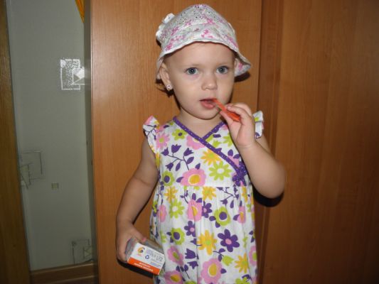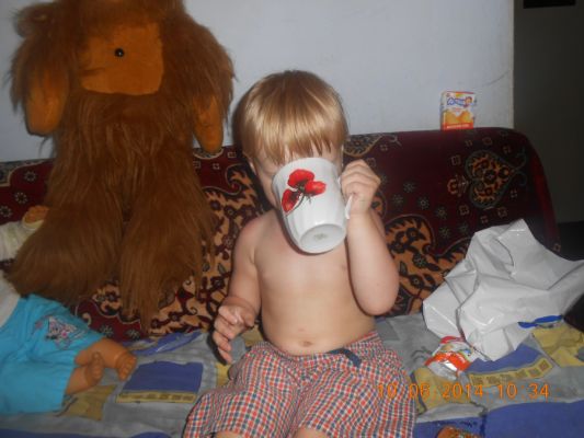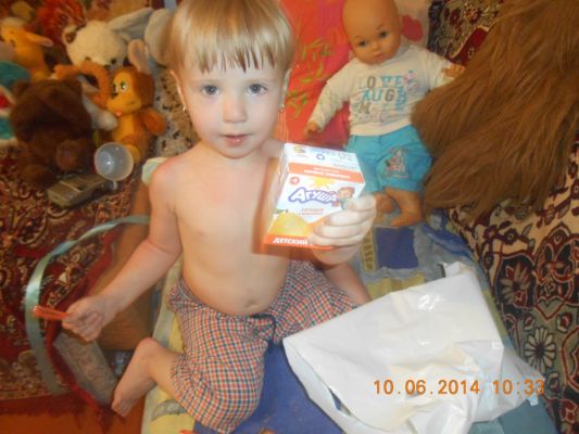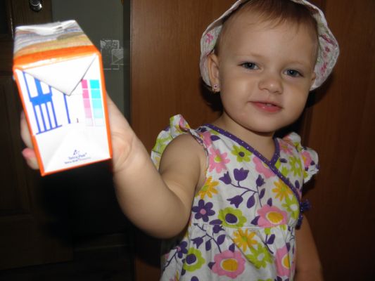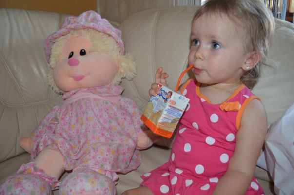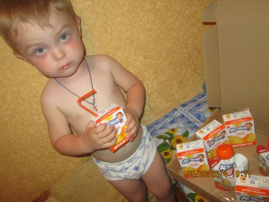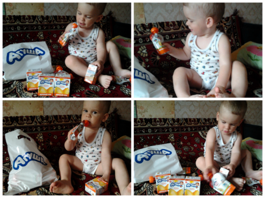 ), сама отрывает трубочку, открывает и вставляет за секунду, и - опа!- сока уже нет!
