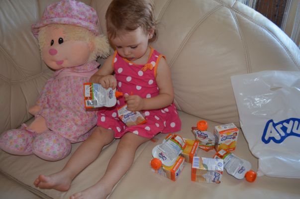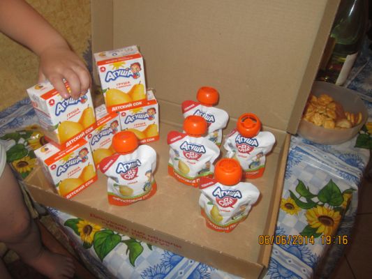 . В посылке было 5 соков Груша с мякотью и 5 пюрешок ГрушаКогда забрали посылочку, доця ни кому не доверила этот ценный груз|