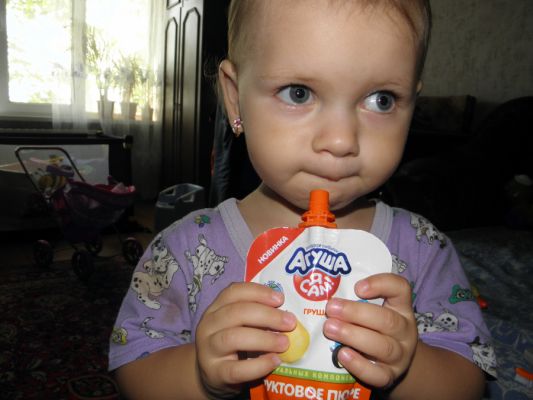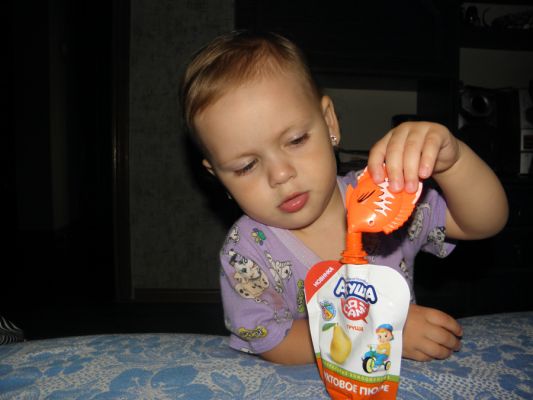 Дочке очень понравилось и пюре, и сам процесс)) Очень удобно, она доже пытается переливать сок в пустой тюбик и оттуда пить
