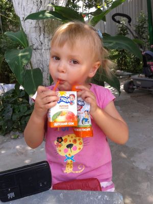 Сок тоже очень вкусный, я ожидала, что он будет с кислинкой и малыш откажется его пить, но нам понравилось, сок в меру сладкий, лично я кислинки не почувствовала, вечером на прогулке самое то