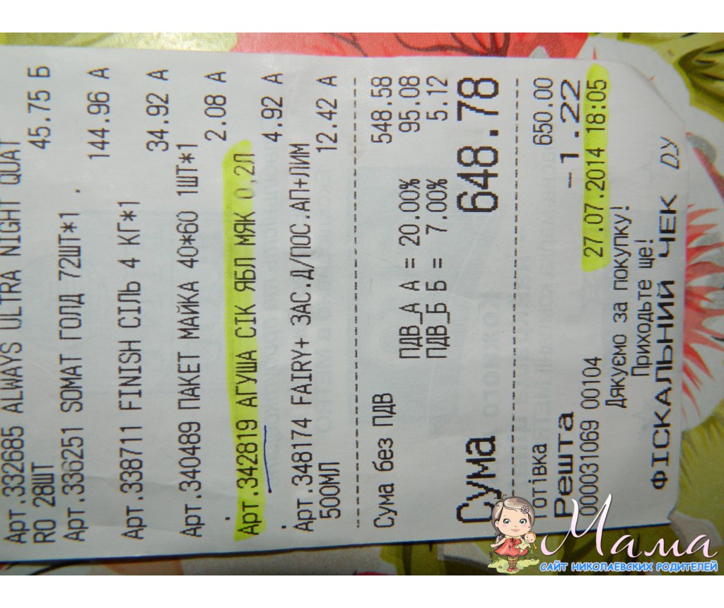 Доброго дня! Я, ЛЮДМИЛА, з Житомира. Фото і історія моя, хоча я від цього не в захваті. Виклала фото з пліснявою аби попередити батьків що таке може бути а не для антиреклами і не для реклами чогось чи когось. Сама раніше неодноразово купувала соки і не тільки ТМ "АГУША" і все було нормально. А тут стався такий випадок. Детальніше можете подивитися в мене на сторінці Ссылка . Я не розумію навіщо СВІТЛАНА виклала ці фото і видає їх за свої і історію за свою, можливо їй є якийсь інтерес до цього. Я дізналася про цей форум від людини яка в коменар під моїм фото написала, що тут я ЛЮДМИЛА, а на форумі СВІТЛАНА і що за прикол???. ТОму і зайшла подивитися. Виправдовуватися я не збираюся, сік мій нажаль, фото моє, чек маю і продовження сподіваюся буде.