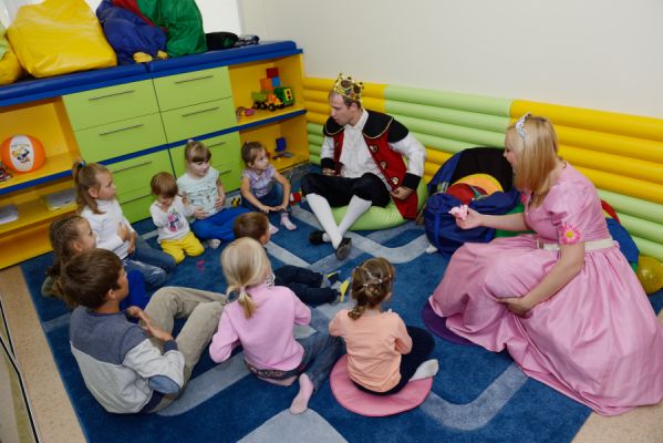 Налопавшись от души, малыши побежали в игровую комнату, где на них уже ждали Принц и Принцесса.