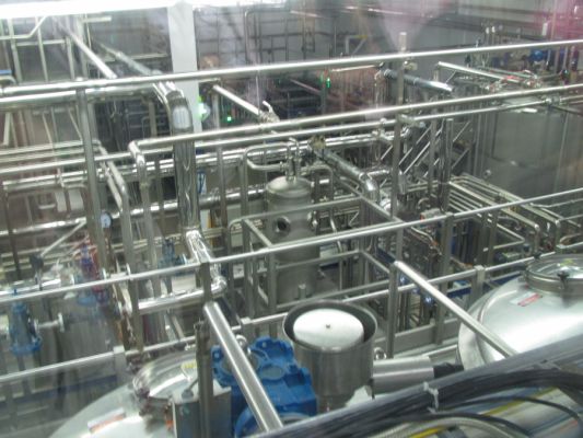 Поднявшись наверх, Дмитрий начал увлекательнейшую экскурсию. На заводе царит абсолютная чистота, каждый сотрудник должен пройти целую процедуру стерилизации перед тем как попадёт на производство. Меня поразило большое количество современного оборудования, которое просто творит чудеса! Невероятная вещь - бактофуга. Что же это? - Расскажу на примере. Когда мы кипятим молоко, бактерии, содержащиеся в нём, убиваются, но никуда не исчезают. В итоге, мы пьём молоко с теми самыми бактериями, только уже не живыми. Не приятно, согласитесь. Так что же делает бактофуга? Она их просто "выталкивает", за счёт этого молока на выходе становится меньше, но "Агуша" не экономит на здоровье малышей!