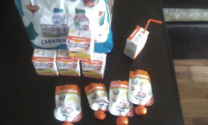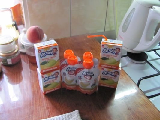 Не успела я принести посылку, тут же дети выхватили по вкуснейшему соку яблоко-банан и в момент их выдули)))