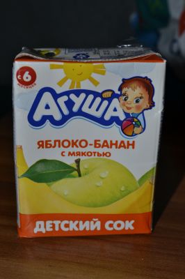 Но чтобы растянуть удовольствие от дегустации вкусностей от Агуши, пюре мы оставили на следующие дни и принялись к распиванию сока яблоко-банан. Тут у меня уже не было никаких сомнений, что сок ей понравится, отличное сочетания яблочка и банана дают нежный , в меру сладкий, фруктовый вкус, а мякоть делает сок более насыщенным. Как же радует, что за доступную цену можно покупать деткам действительно натуральное и полезное питание!