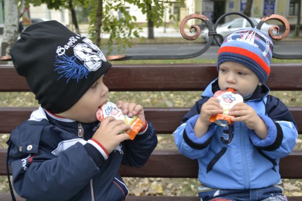 Фото всего набора сделать не удалось. т.к. дегустацию Артем начал еще на прогулке вместе со своим другом Кирюшей