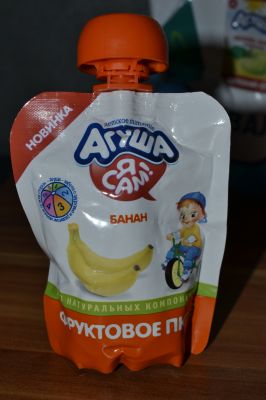 Хочу сказать, что банан в обычном виде моя дочурка не очень жалует, поэтому для меня было приятная неожиданность, когда попробовав банановое пюре Агуша, дочка не только скушала все залпом за один подход, но и одобрительно кивая головкой и улыбаясь попросила еще!