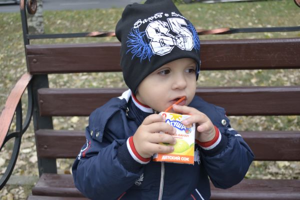 Я не задумываясь взяла сок и пюрешку с собой на прогулку, ну и конечно же захватила еще по одному для нашего друга - Андрюши!