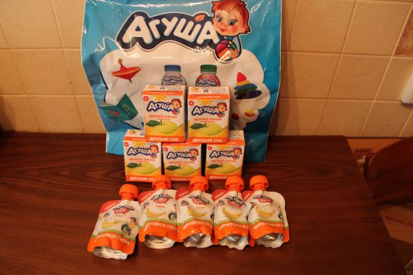 (как говорится - не отходя от кассы, а в нашем случае - не отходя от отделения Новой почты). Еще и помощники нашлись, так что до дома доехала коробочка уже не в полном объеме))Вкус пюре конечно специфический, манюня его ест, но по настроению. Ну а соки конечно улетают на УРА!!! Хоть вроде и не лето уже, а ни одна прогулка без сока не обходится. Ну и естественно - ни один полдник без йогурта или творожка Агуша, т.к именно этой торговой марке я доверяю больше всего. Так что получается - НИ ДНЯ без Агуши