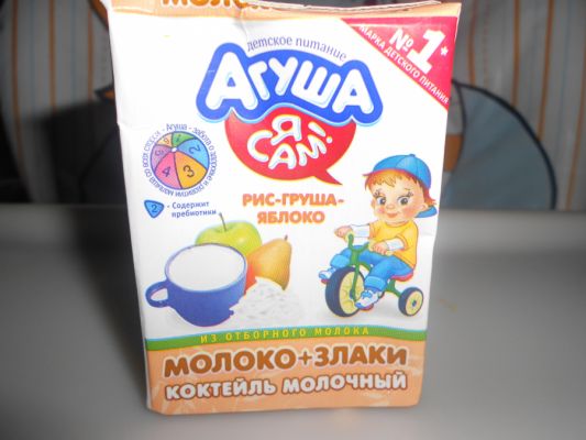 !!!!! Наконец-то, мы попробовали молочный коктейль Молоко+злаки рис-яблоко-груша.