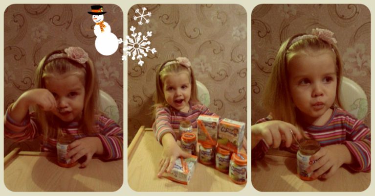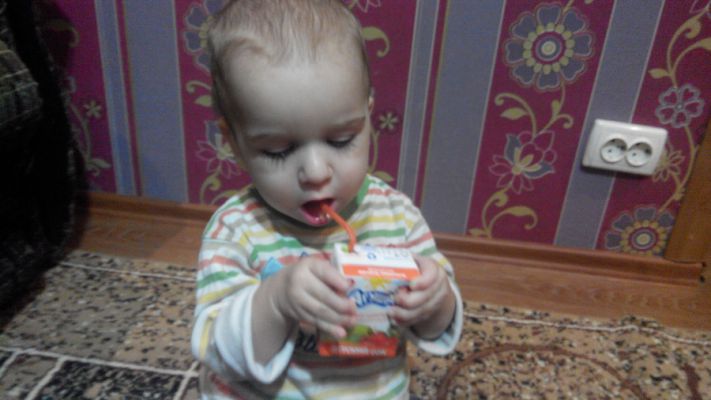 Ребёнок первым делом начал пить сок, и его не возможно было оторвать от сока, очень пришлось ему по вкусу и пюре от которого был такой а петитный аромат.