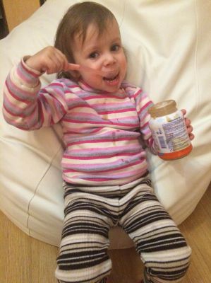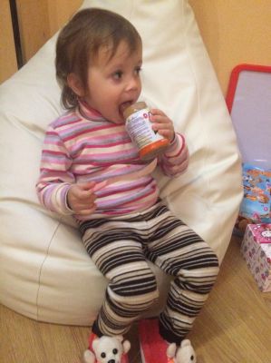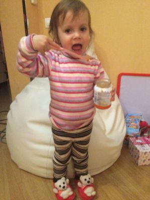 Наша дочь уже научилась разговаривать и теперь по несколько раз в день подбегает и жалобно так тоненьким голосочком тянет маму за штанину: "Мамааааа, ребенок очень просит сока!" Маленькая хитрюшка очень любит всю продукцию ТМ Агуша, все без исключений соки и пюре, но есть и любимчики, а творожок и вефир предпочитает классический, без добавок! Было бы интересно, если бы ТМ Агуша запустили бы еще в производство детское печеньице (может оно уже есть? я не в курсе, не встречала), дочка очень любит, крошит сама в творожок и кушает)