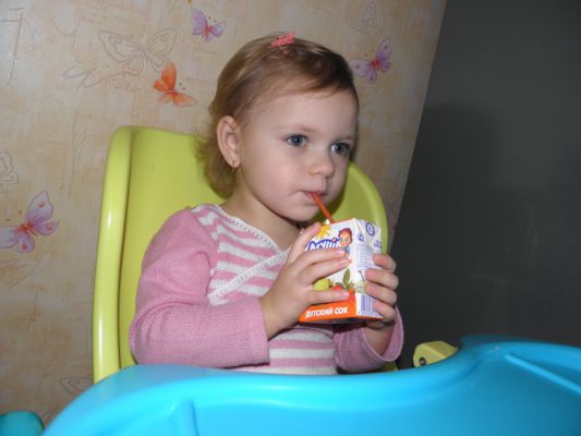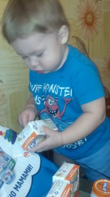 Сыночек с огромным удовольствием на полдник покушал пюрешку, попил сок. А когда распаковали
