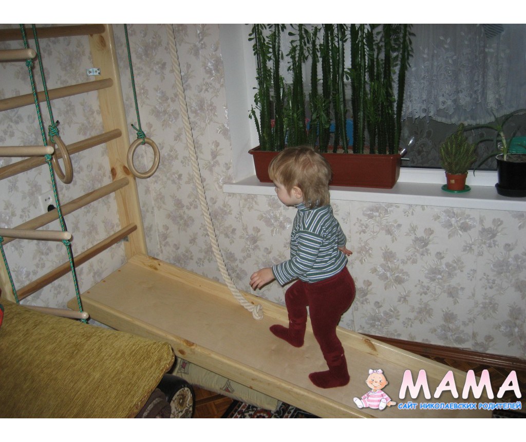 Теперь о ребенке На первом месте конечно горка, ее еще не снимали Ездим, ходим, коляску по ней катаем, машинки На кольцах висим, вверх-вниз лазим Очень хорошо когда приходят в гости детки постарше, потом у нас репертуар расширяется Вначале я конечно над ней стояла, руки очень слабенькие были, сейчас уже без меня играет Хотя бывают дни когда она к ней даже не подходит
