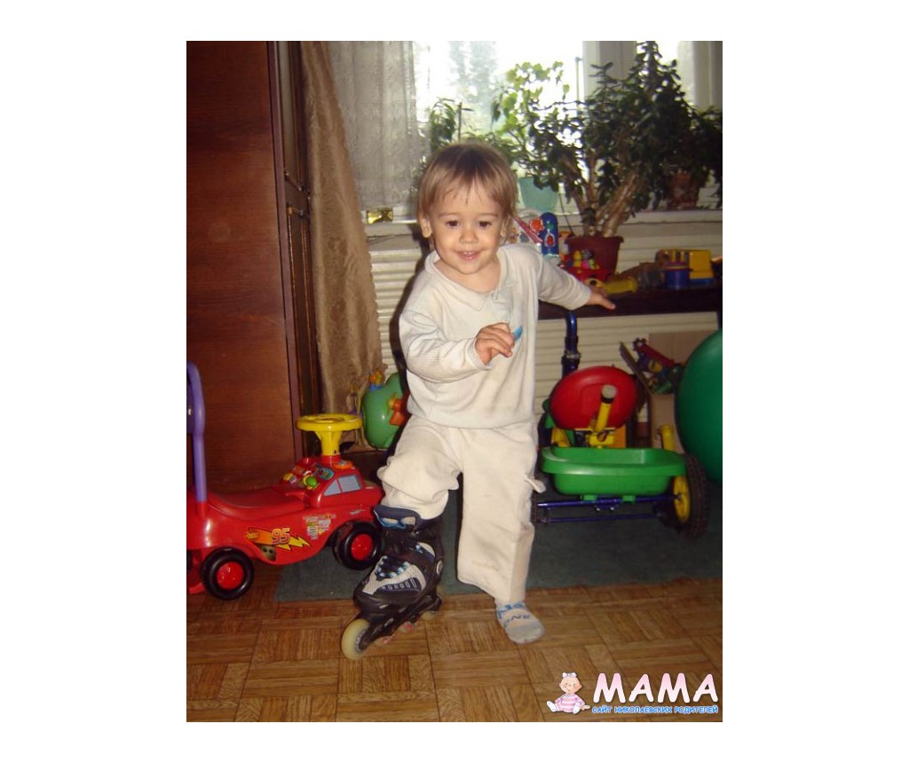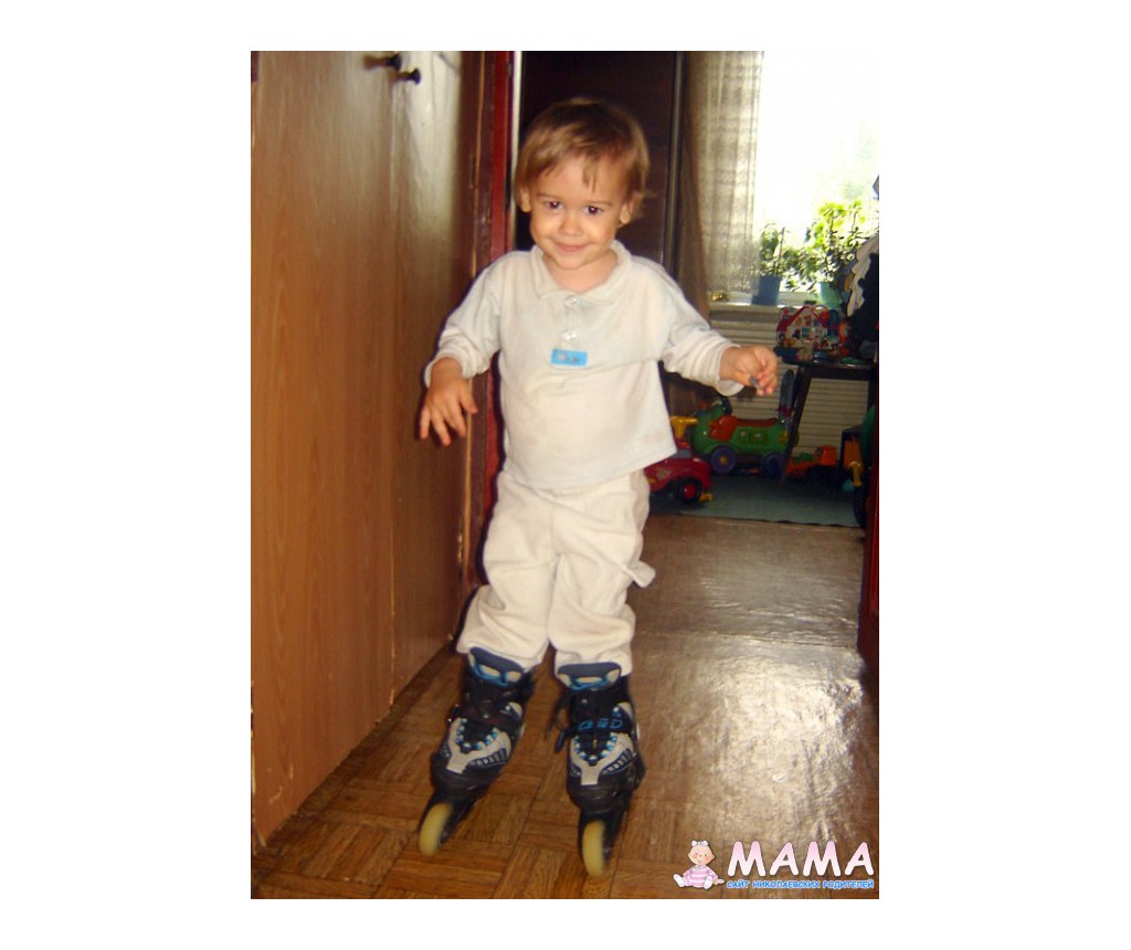 Вот так Всеволод начинал, он сам ноги всовывал, когда хотел, на одном ролике катался с полутора лет, как на самокате,