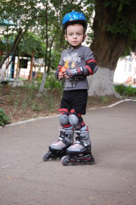 Да Всеволодька вообще бесстрашный, в ролики залез, еще когда 2 лет не было :) На 2-й странице про это писала. Но на улице только с 3 лет катался.