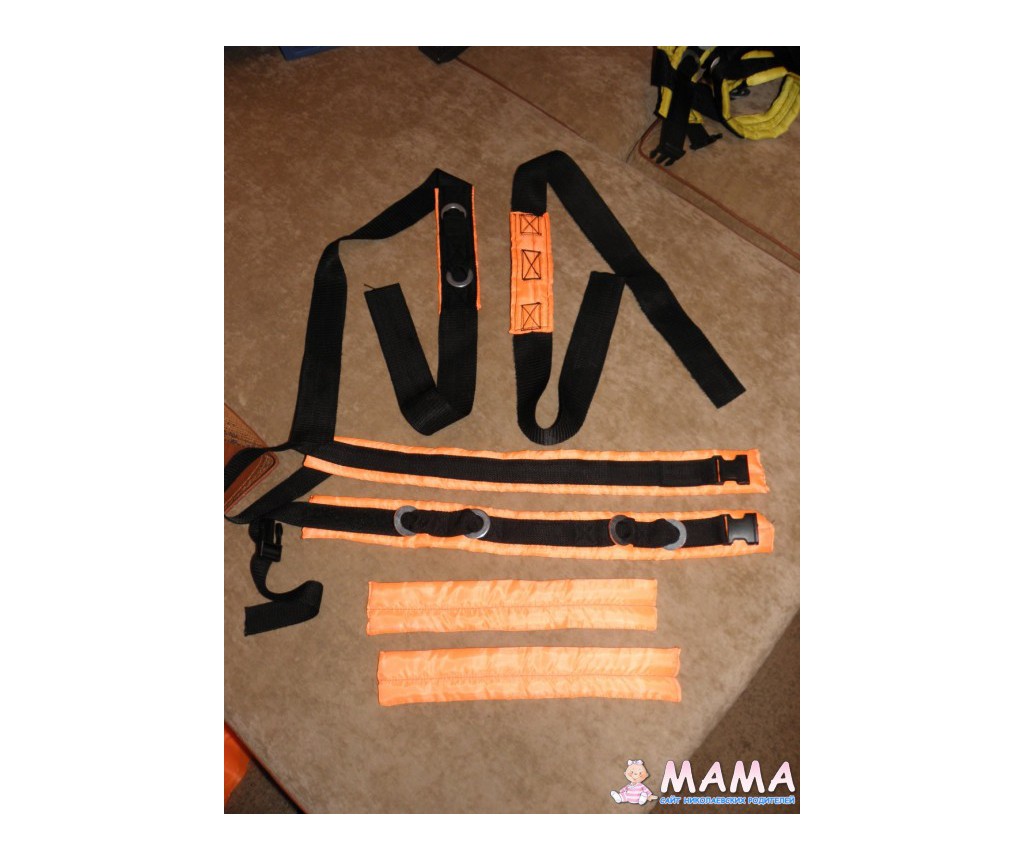 Туара,за 2 года действительно рвалась резина,но так как на один карабин идет 4 резины,а всего 4 карабина,то при порыве резины этого и не ощущается Вообще хочу с зарплаты купить крючки на стену и сделать растяжку из круглой резины. И на летунках тоже поменять на нее. Смотрела на форуме,что за счет растяжки летунки получаются офигенно прыгучие. Через пару лет к школе будем делать малым ремонт,а сейчас можно поиздеваться над комнаткой. Кстати,Наташа, все придумывала сама, и накладки придумала,потому,что все на сайте жаловались,что ребенку давит в ножки. Шила практически обернув малого ремнями и прямо на нем