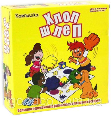 Нам сегодня подарили "Хлоп-шлеп", игра на быстрое нахождение цвета. В наборе полиэтиленовое поле игровое, кубик большой, 4 перчатки огромные поролоновые и фишки. Для трехлеток отлично, но нам тоже очень понравилось, весело поиграли. И мне кажется, в эту игру очень интересно играть детям самим - не сложная и такая прикольная за счет этих огромнющих перчаток :)