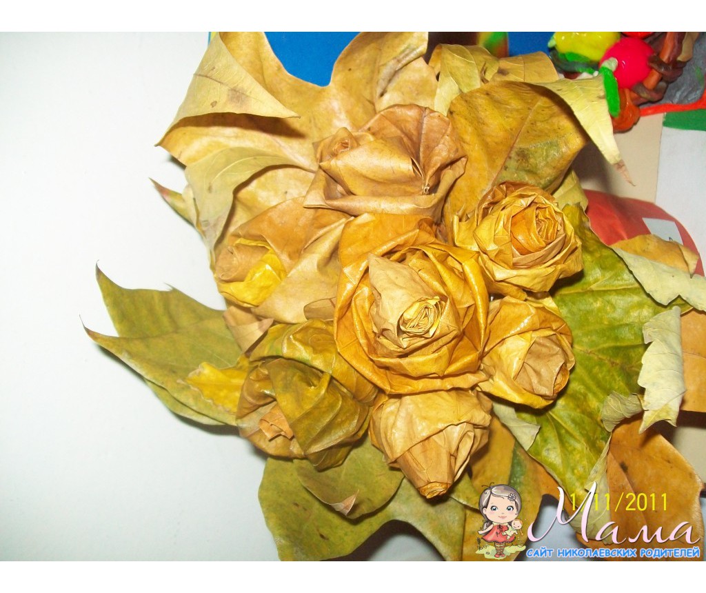 Наверно, в этой теме уже писали про розы из листьев , я просто покажу наш букет ( делали с дочкой в сад на тему "золотая осень", но не в этом году