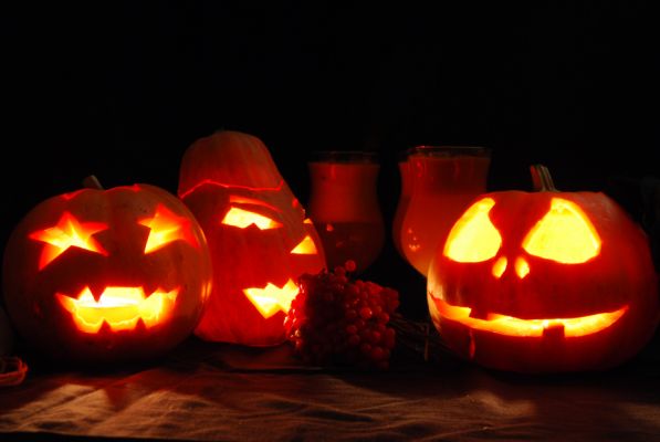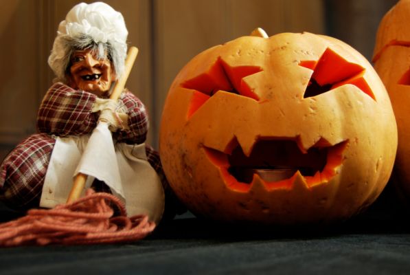 хэллоувинские тыквы шикарные! а бабку эту на первой фотке где взяли?)) она горбатая сзади?)