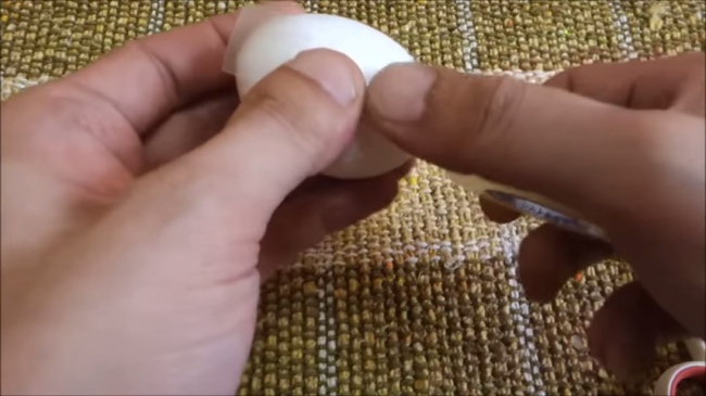 До начала экспериментов можно просветить яйцо фонариком. Оно будет легко просвечиваться. Потом обмотаем яйцо скотчем — плотно и тщательно.