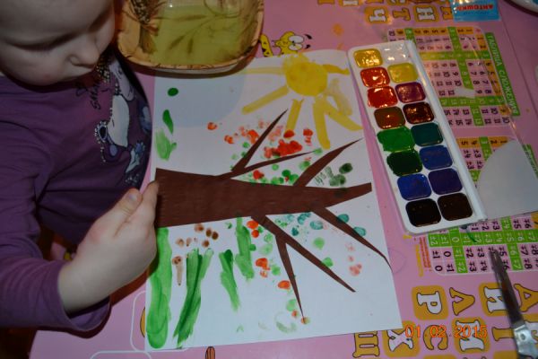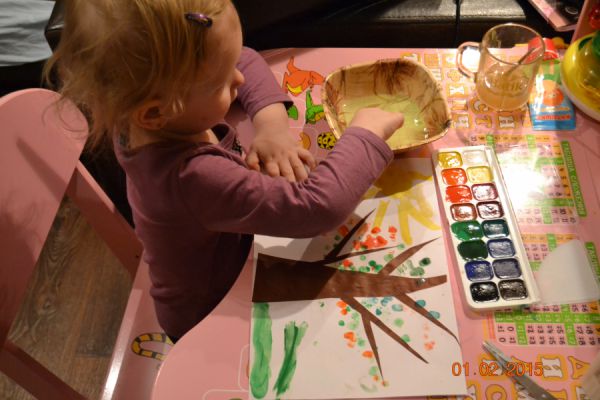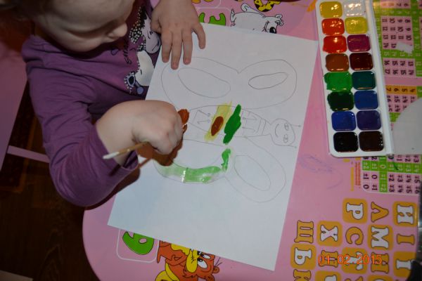 Из-за этой погоды,сидим дома безвылазно,уже надоело(((решила доцю познакомить с красками,т.к. пальчиковые никак не куплю,нашла у сына обыкновенную гуашь,так увлеклись,что даже муж к нам присоединился,рисовал,в надежде,что дочка будет разукрашивать его произведения))) рисовал вместе с ней,в итоге,еле оторвали от красок,с не большой истерикой,но быстро завлекли её другой игрой))