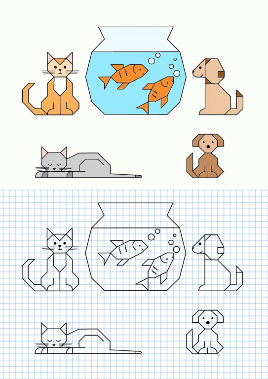 Научите кроху обводить свою ладошку и разные предметы: блюдца, стаканчики, формочки для печенья и песка, детальки конструктора и др. Для этого малыш левой рукой должен придавить предмет к листу бумаги, чтобы он не сдвинулся, а правой – аккуратно обвести его. На первых порах помогайте ребенку. У вас получатся силуэты, которые потом можно раскрасить или разрисовать узорами. Пусть малыш обведет на бумаге сначала свою ладошку, а потом – мамину (и папину тоже можно). Предложите крохе дорисовать ноготочки, пусть «наденет» на пальчики колечки, а на запястья – браслеты и часы. Ребятишки очень любят такое забавное рисование. А можно разрисовать каждый пальчик так, чтобы он стал похож на веселого человечка.