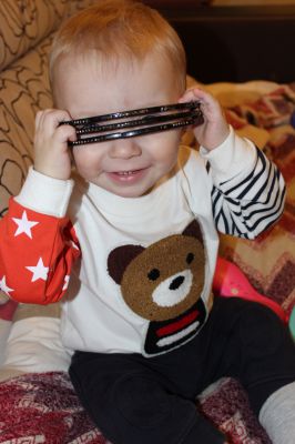 Забрала у бабушки очки и газету и важно села почитать, причем редкость, что присела на стул, а не на горшок))