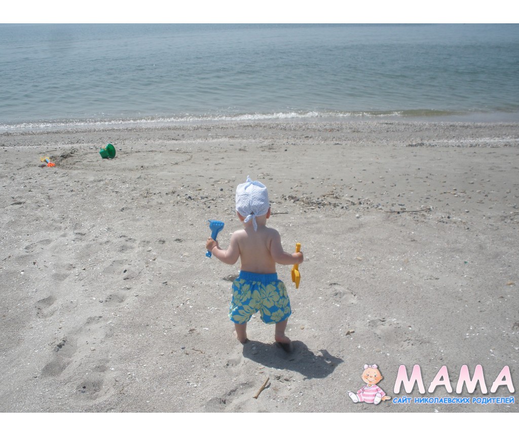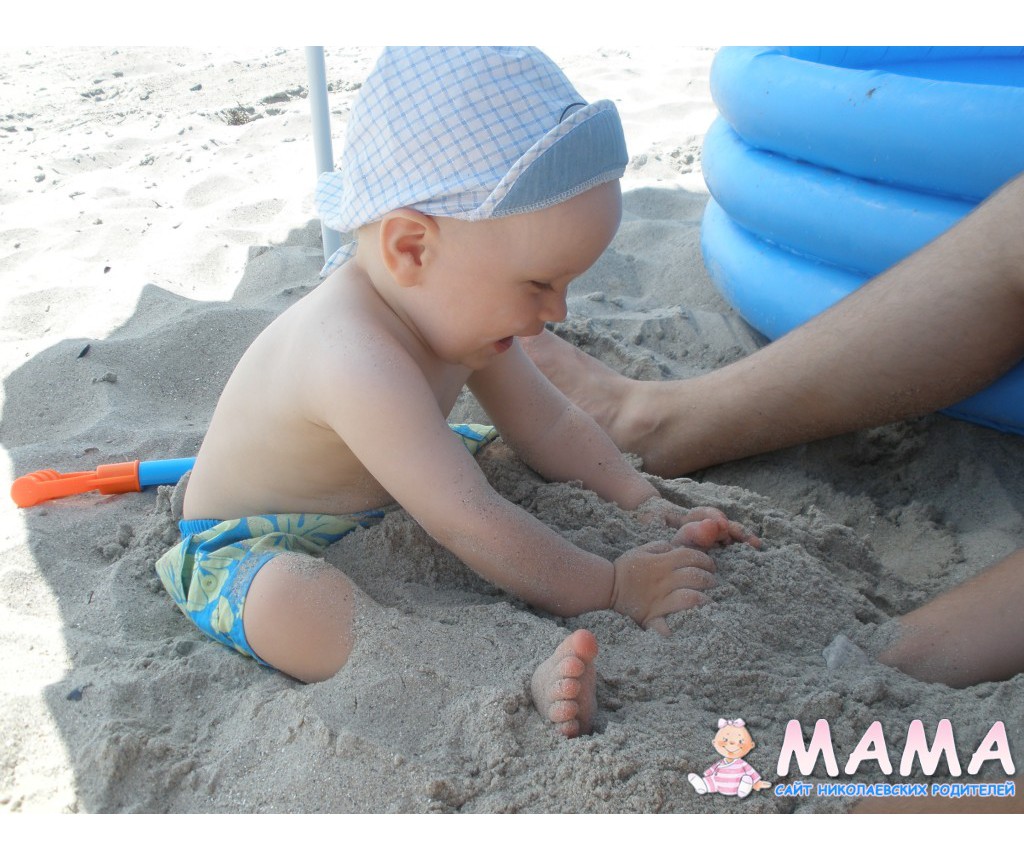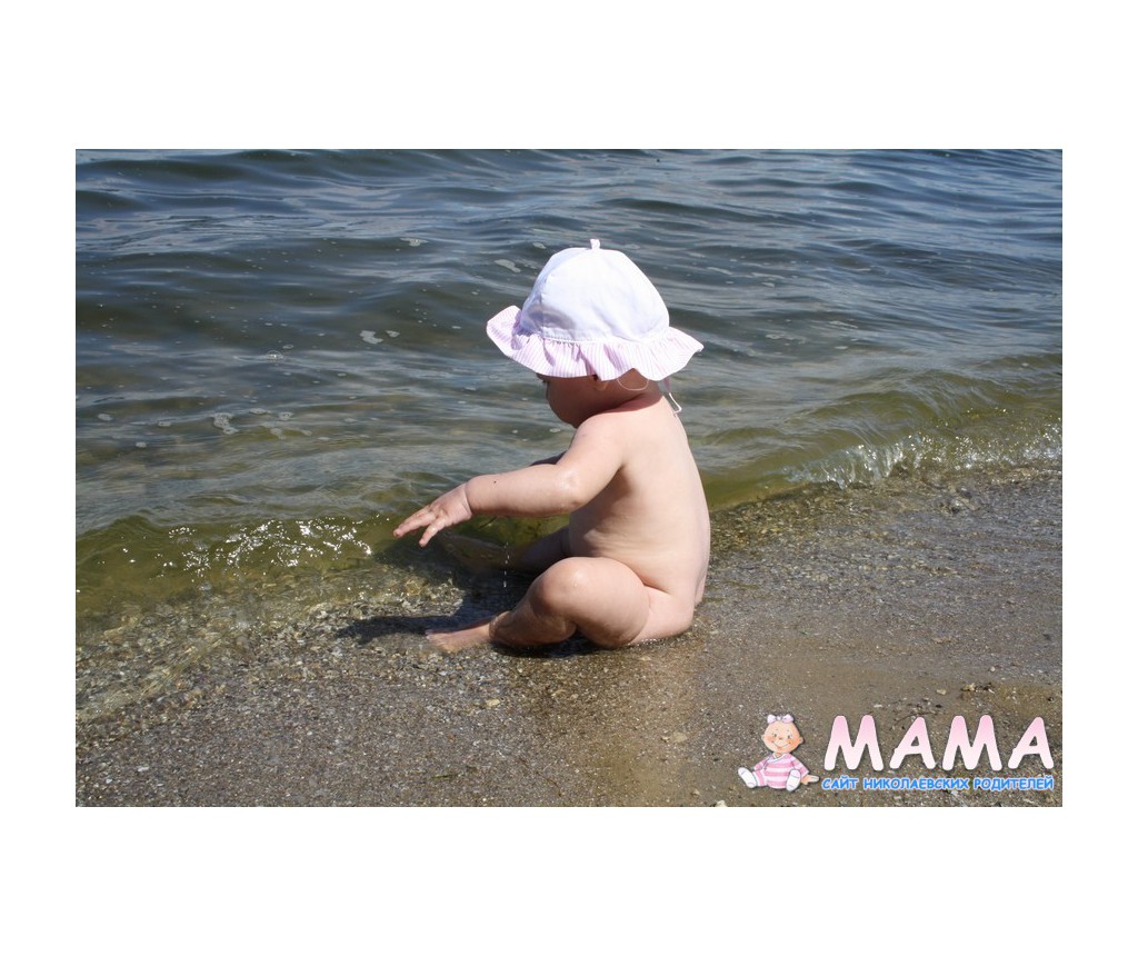 Пока стелила покрывало, мой 8-ми месячный пупс быстро полез знакомиться с водичкой