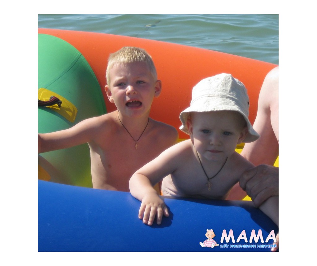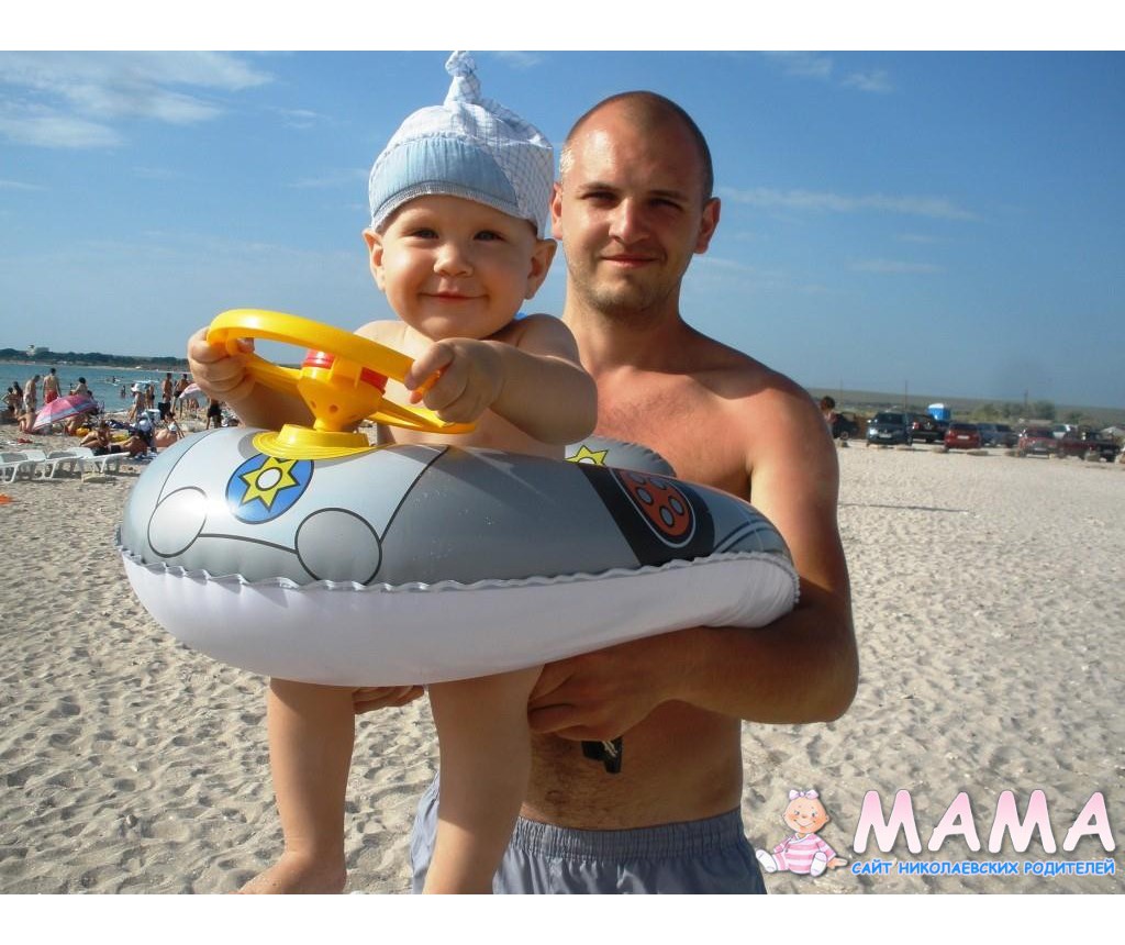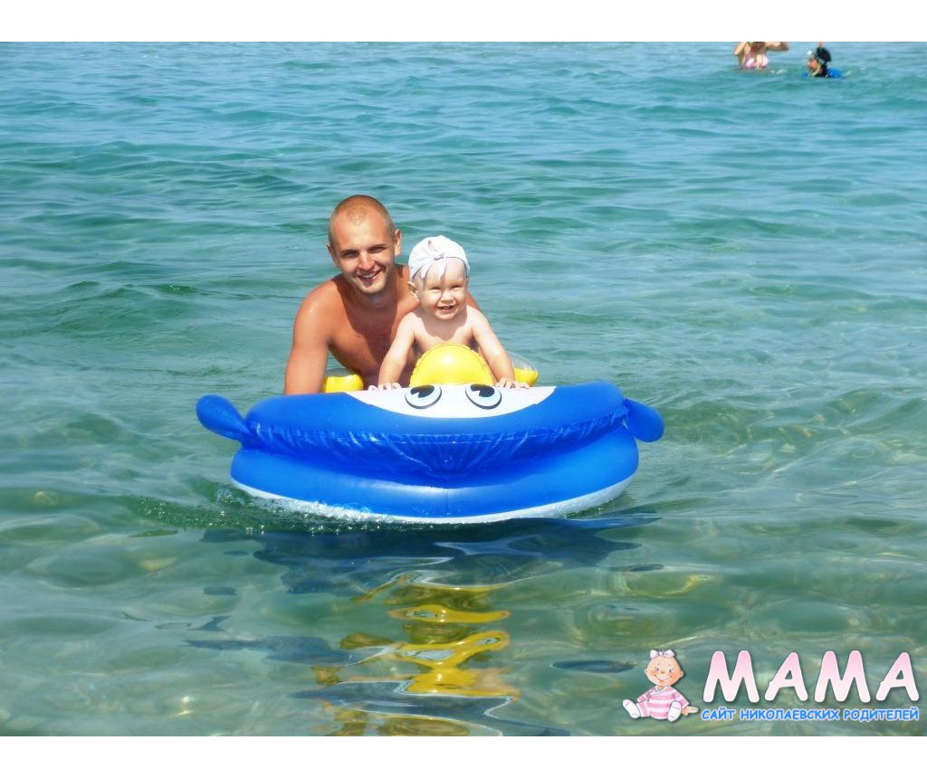 Ось наш плавець =) До серпня він вкрай осмілів і заходить на глибину тільки сам, з кругом плаває тільки сам і намагався пірнати слідом за татом, але я поки не готова до його пірнання))
