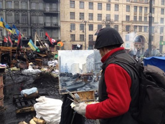 13 February 2014 Гeнepaл MBД в Чepкaccax c aвтoмaтoм ждeт нapяд милиции, кoтopый вeзeт eмy пoвecткy