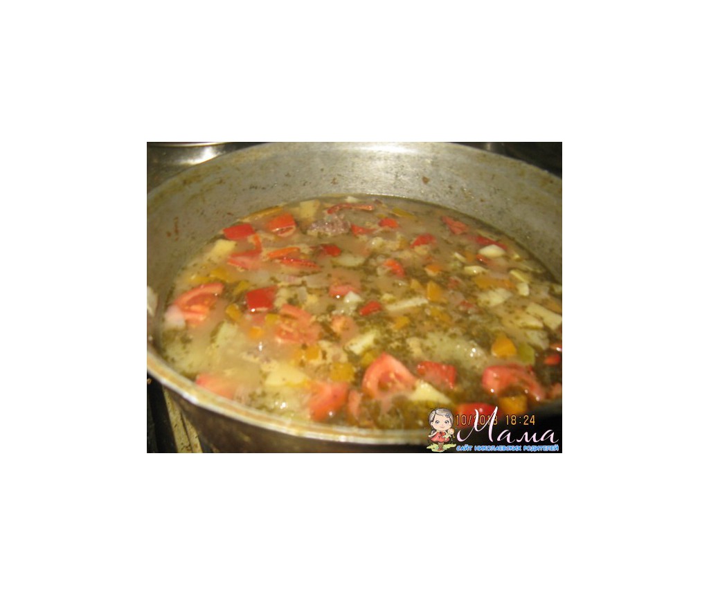 Шурпа в 99% случаев - суп с мясом. С бараниной. А какая баранина в казане, если в доме - двое малышей и кормящая мама? Решено, берем гипоаллергенную говядинку. Для запашистости, увы, придется ее обжарить - чуток оливкового масла, и вперед, до легкой корочки. Готово? Теперь - по овощам и кореньям. Мы с мужчинами сегодня прошлись по овощному рыночку возле "Южного Буга", так что побалуемся...
