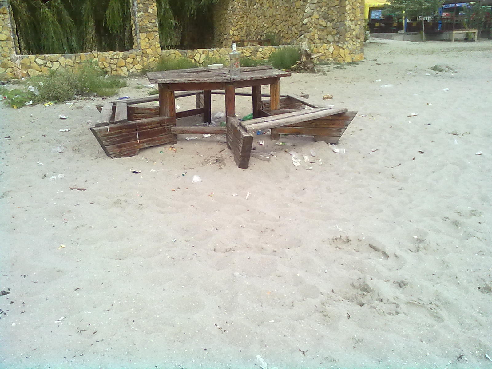 вот тут сколько раз я была - достаточно чистенько и людей мало было. раздолбанный стол - остатки бомбардира.