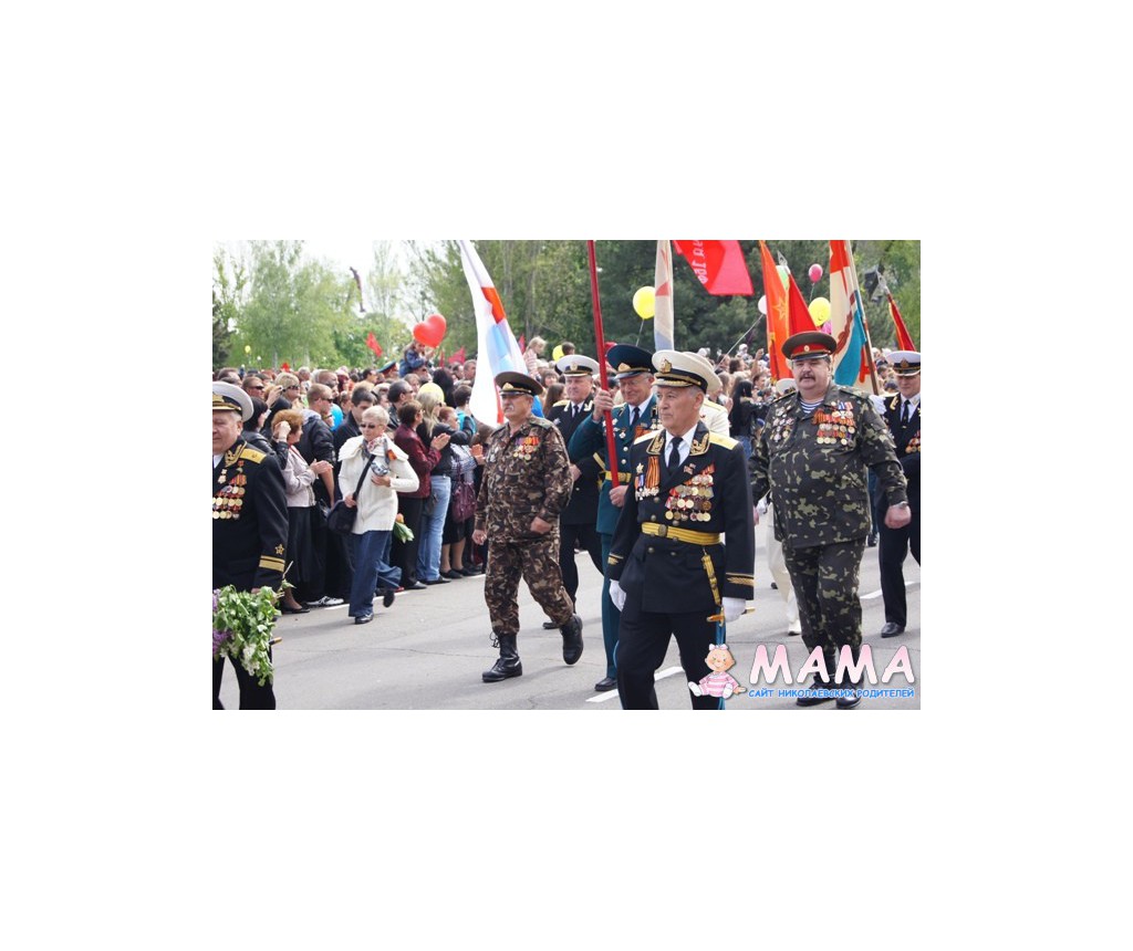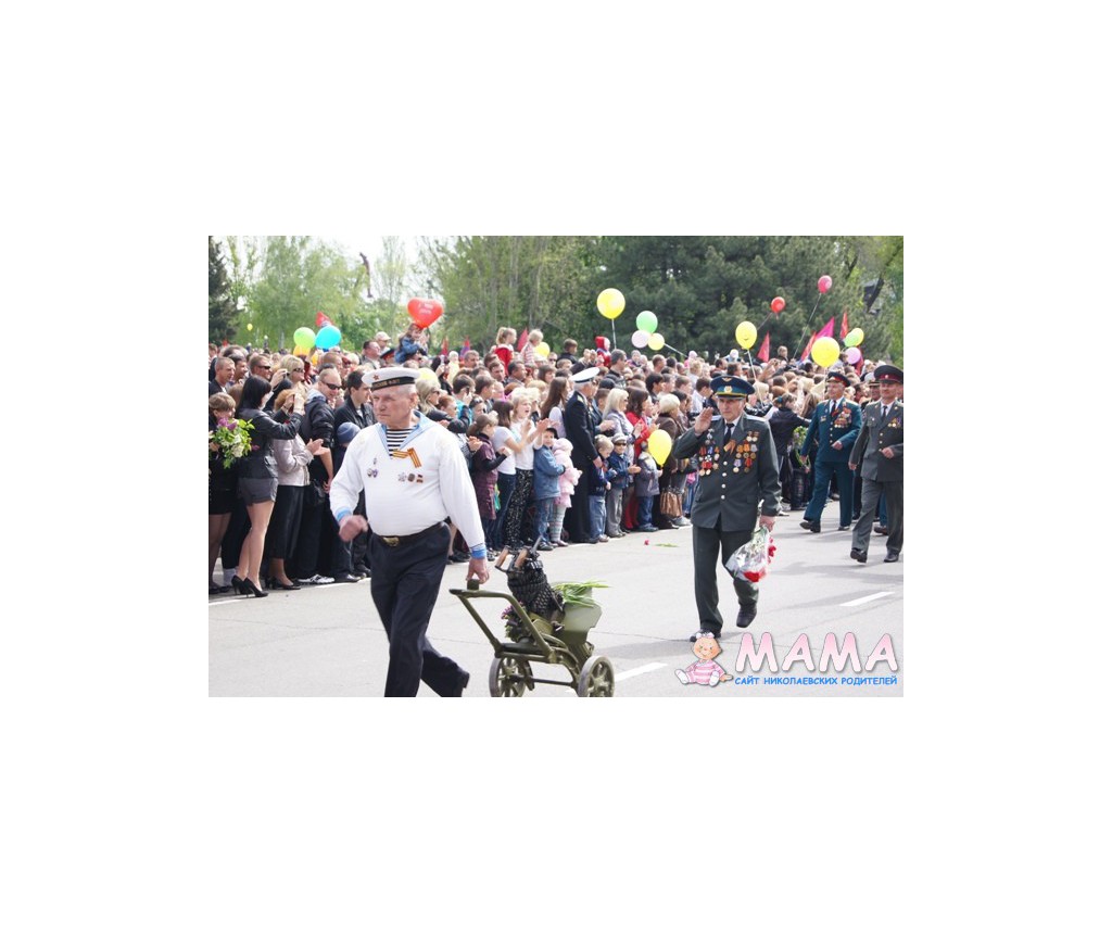 Мы были на параде, всю программу выполнили: прошлись с колоннами, отметились на митинге, поздравили ветеранов, возложили цветы, послушали оркестр, полазили по танкам, с моста понаблюдали за соревнованиями по гребле, отобедали в полевой кухне, посмотрели выступления десантников-разведчиков. Домой ушли т.к. ребу уже давно пора было спать