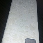 Стильный чехол для iPhone5. Молочного цвета, кожа... с забавным тесненным рисунком.