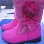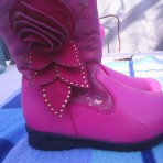 Красивые, яркие сапожки. Состояние хорошее. Змейки работают. Один дефект сбитые носочки ( видно на фото). Если надо дам замеры.Размер 27.