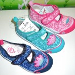Мокасинчики мягкие, удобные, очень легкие. Стелька ортопедическая, с супинатором. Верх из качественного текстиля, очень красивые и яркие. Плотный задник, хорошо держит пяточку, подошва - пластичная резина. Очень просто застегиваются на липучку и фиксируются на ножке.