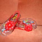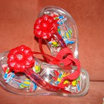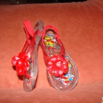 Шлепки 22 размера (13,5см.) хорошего качества с ортопедическим подъемом, плотной, но гибкой подошвой с фиксированной пяткой. Причина продажи не подошел размер.