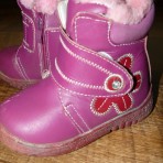 ФОТО 2-4. Зимние сапожки для девочки. Размер - 22. Верх - искусственная кожа, внутри - цигейка. Застегиваются на змейку и на липучку. Дефекты - немного сбиты носочки. Цена - 60 грн.