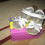 Босоножки белые с серебристым полностью кожаные. Фирма Little Deer. Размер 22.По стельке 14 см.