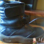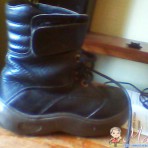 Кожа, состояние хорошее,цвет-черный, есть небольшие дефекты на подошве, застежка-липучка и шнурки, утеплитель - искусственный мех. Торг!