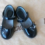 Туфли на девочку чёрные размер 26 по стельке 15,5 см дефекты на фото видно задник,и не хватает камешка цена 50 грн.ПРОДАНЫ.
