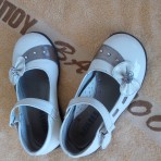 Туфли на девочку белые размер 25 по стельке 15 см дефекты есть на стельке,выпали камешки цена 40 грн.