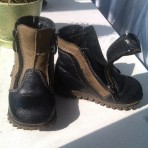 Продам ботинки на мальчика фабричные, размер 22, постельке 14,5см, кожаные, подкладка флис, внутри "дышащая" стелька - drysole "сухая" стелька.Поцарапаны носки,но если использовать крем,не сильно заме...